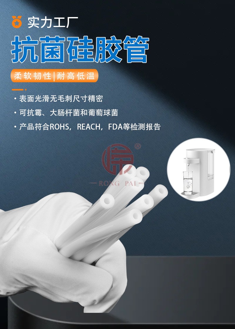 抗菌硅膠管是特種有機硅改性混煉膠,加入硫化劑和其它助劑,通過高溫加熱硫化成型,經裁切機剪切所需長度后進行二次滅菌處理制得終端產品,是一款專為高衛生標準場景設計的特種管材,兼具長效抑菌(99.99%抑菌率)、醫療級安全(FDA/ROSH認證)及寬溫域適配(-60℃~250℃)等特性。通過SGS 3000小時抗菌測試和GB衛生標準驗證,已服務全球1500+企業,以零污染、高可靠性、全場景兼容優勢解決傳統管道微生物滋生、化學腐蝕等痛點,成為醫療介入、食品機械、咖啡機、飲水機、電熱燒水壺、廚衛電器、家用電器領域的核心組件。