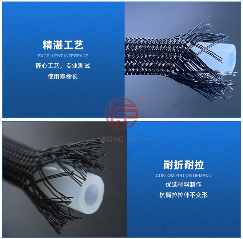 芳綸編織硅膠管是有機硅混煉膠,加入硫化劑和 其它助劑,通過高溫加熱硫化成型。再經編織機編織外護套成型。廣泛應用于機械設備、氣泵耐壓、焊接設備等行業。
