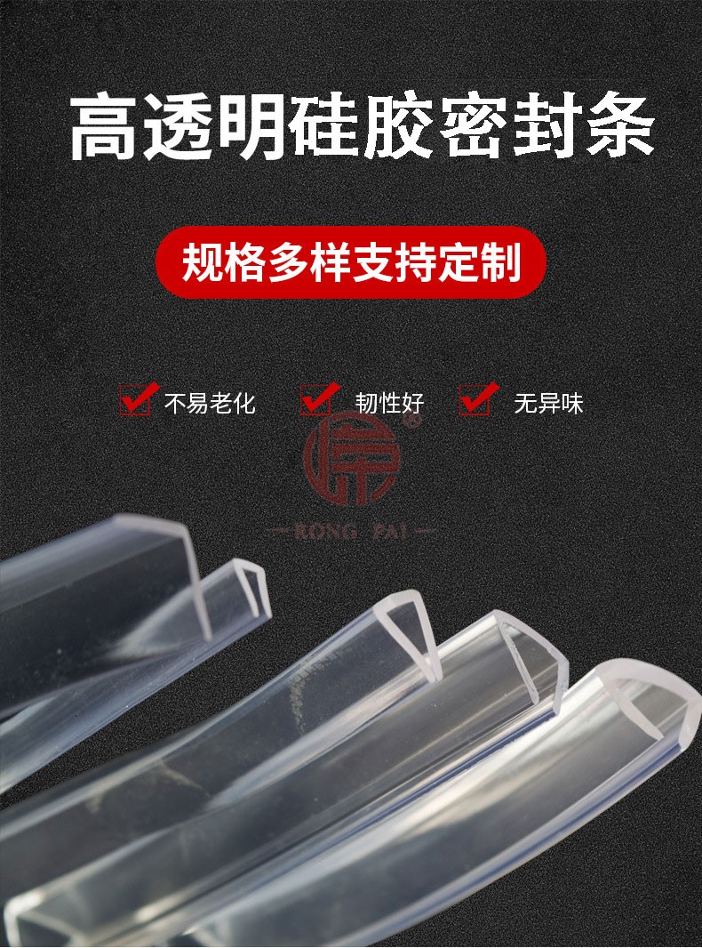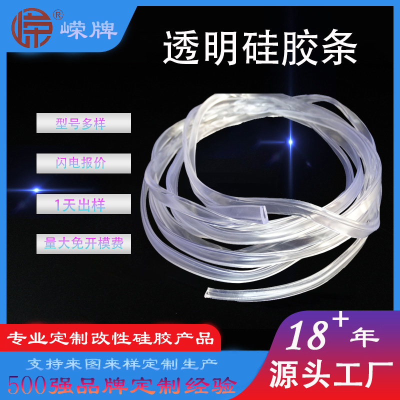 透明硅膠條是氣相有機硅混煉膠,加入硫化劑和其它助劑,經過高溫 加熱硫化成型。 廣泛應用于廣告裝潢、玻璃櫥柜、機械設備、電子電氣等行業。